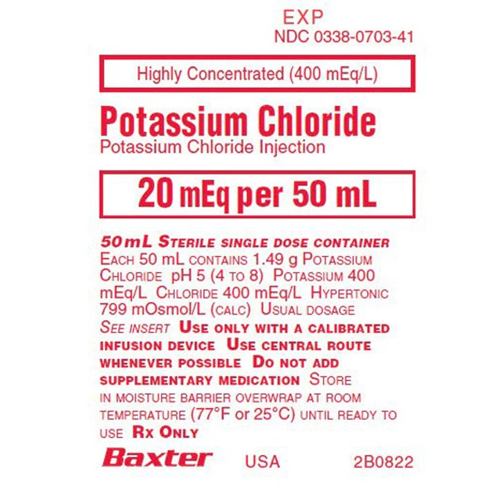 BAXTER POTASSIUM CHLORIDE 20 MEQ50ML #2B0826
